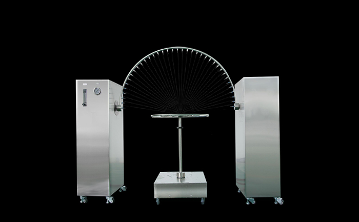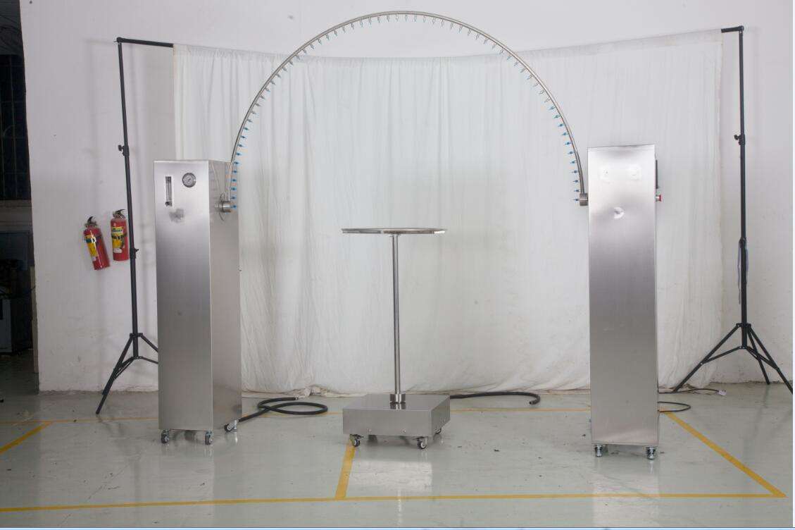 6、噴嘴:根據試件的大小,箱體的內容積決定擺管的彎曲半徑。噴嘴為可折式專用噴嘴,噴孔可根據標準要求的孔徑隨時更換,可調節噴水方向,使射出的水滴均勻,流量充足